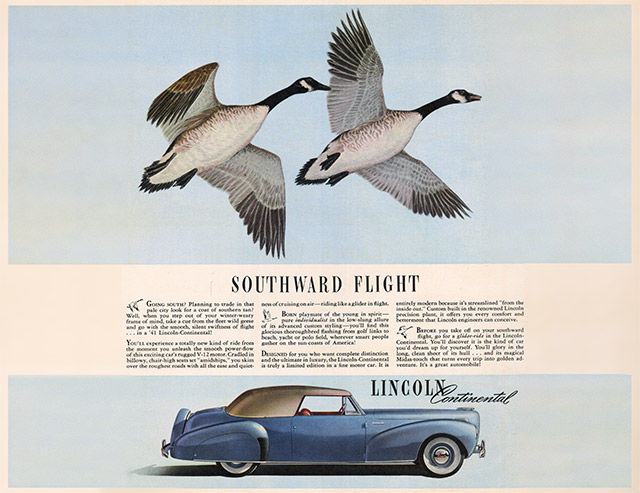 El 13 de Diciembre de 1939, la producción comienza por uno de los diseños más duraderos de la industria automotriz estadounidense. Buscando una toma única de América en los sedanes de gira de "el continente" (también conocido como Europa), Edsel Lincoln pidió al diseñador Bob Gregorie para crear un "coupe convertible especial que fuera largo, bajo y desenfadado" para uso personal en su casa de vacaciones en Florida. En menos de una hora, Gregorie había dibujado el contorno de las dos puertas, cuatro plazas del cuerpo sobre un dibujo de un sedán Zephyr.